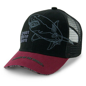 【サメ メッシュキャップ ホホジロザメ ブラック&ダークレッド 】スポーツグッズ アウトドアグッズ フェスグッズ サメグッズ 動物 生物 魚類 鮫 帽子 ファッション小物