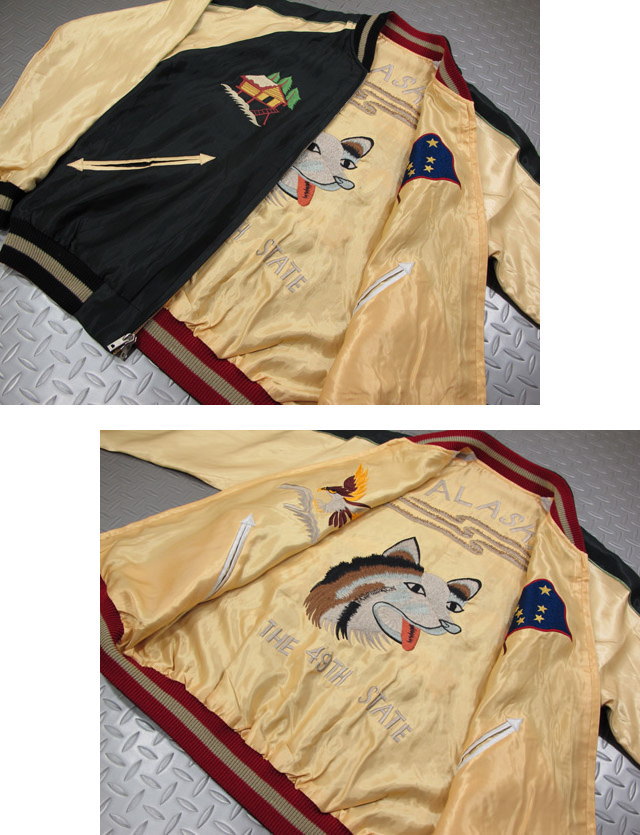TAILOR TOYO/テーラートーヨー ACETATE SUKA/ SOUVENIR JACKET リバーシブル・サテン スカジャンBLACK/C.GOLD“DOG SLED”×GOLD/SILVER“ALASKAN HUSKY”Lot/TT13838