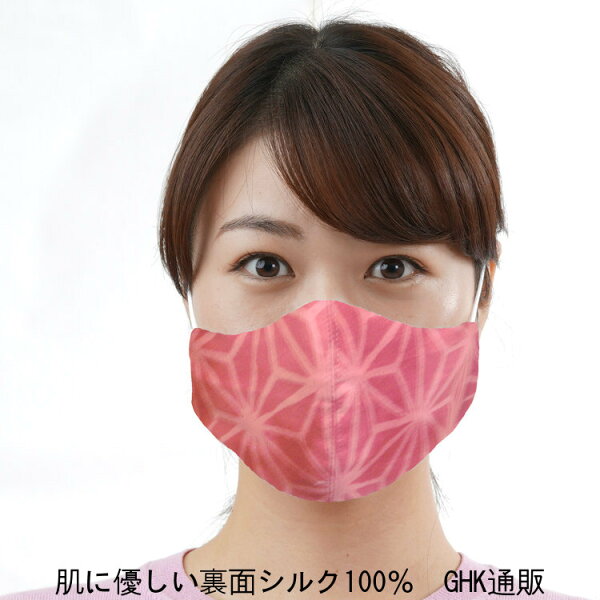 日本製の幾何学柄 綿マスク 口元に肌に優しいシルク100%素材 耳ひもは調節可能です。
