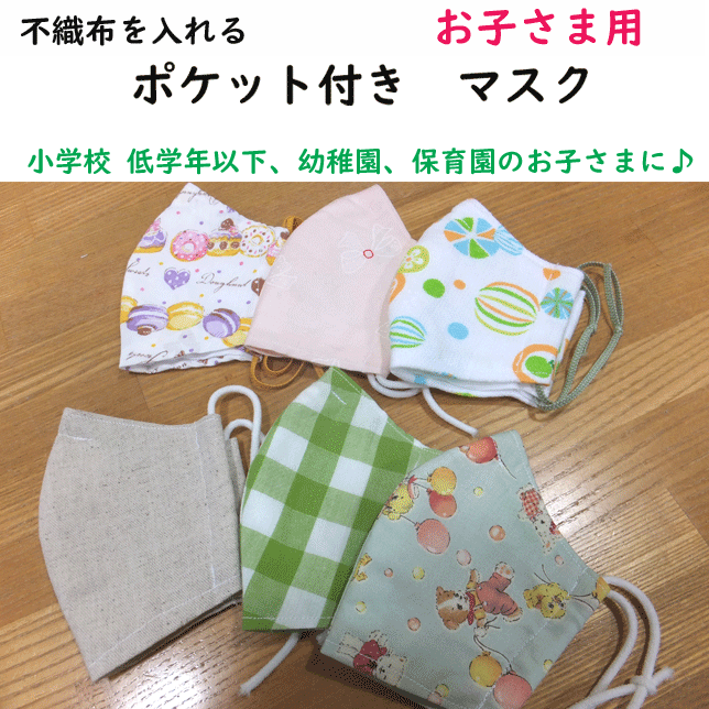 不織布フィルターを入れる ポケット付き子供用マスク ★