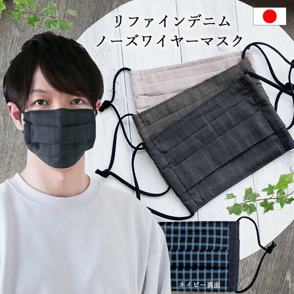 ノーズワイヤ入り プリーツ布マスク 洗濯をして何度でも繰り返し使用可能な「日本製リファインデニムの布マスク」。