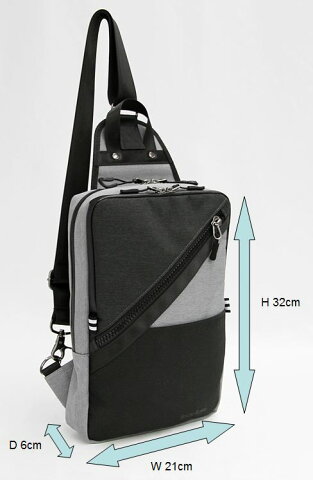 外寸 W21×H32×D6(cm) カラー グレイ ブラック ネイビー [Tag] 【送料無料】Bruno Rossiボディバッグ 雨に強い撥水加工 タブレットポケット 充電器収納ポケット付 ブルーノ・ロッシ 9307 株式会社富士 190617-23 0367