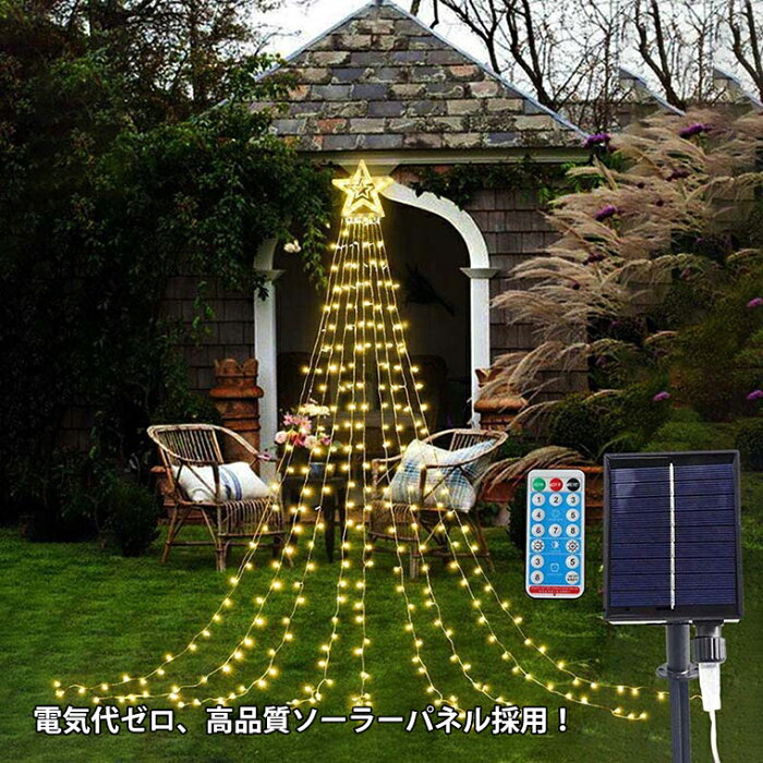 イルミネーション ソーラー式 ドレープライト 星モチーフ LED 350球 3.5m 全3色 ドレープ9本 体験版 ソーラー 防水 クリスマス ライト ツリー 飾り付け イルミネーションライト