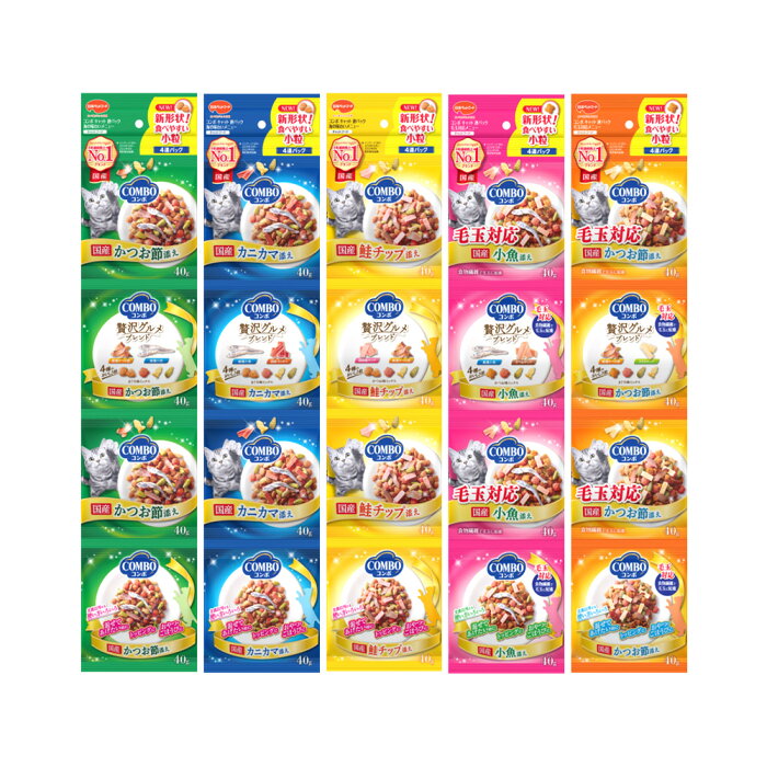 メーカー:日本ペットフード品番:114463ミオコンボ連パック5種セットの登場!アソート ミオコンボ連パック5種 160g(40g×4連)対象猫タイプドライフード機能総合栄養食ライフステージ生後2ヶ月以上特長■食べやすく管理しやすい、40g×4袋の食べきりサイズ。